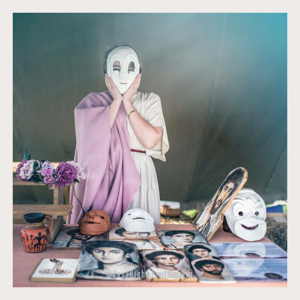 Nieopodal zobaczycie wnętrze rzymskiego domu z triclinium, które przygotowali członkowie stowarzyszenia Hellas et Roma. Poznacie techniki malarstwa antycznego oraz tworzenia przepięknych mozaik, a także dowiecie się, czy greckie i rzymskie rzeźby miały kolory.