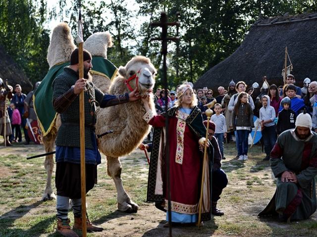 Thietmar, niemiecki kronikarz i biskup z Merseburga, przeniesie Was do roku pańskiego 986. Do Kwedlinburga przybywa książę Polan, sam Mieszko I, żeby oddać cześć cesarzowi niemieckiemu, nieletniemu Ottonowi III. Jak na ambitnego władcę przystało, wśród wielu luksusowych prezentów, jakie Mieszko w darze dla cesarza ze sobą przywiódł, jest wielbłąd – wyjątkowy dar, który ma świadczyć o tym, że przez kraj Polan wiodą dalekosiężne szlaki, a jego mieszkańcy utrzymują szerokie kontakty handlowe.