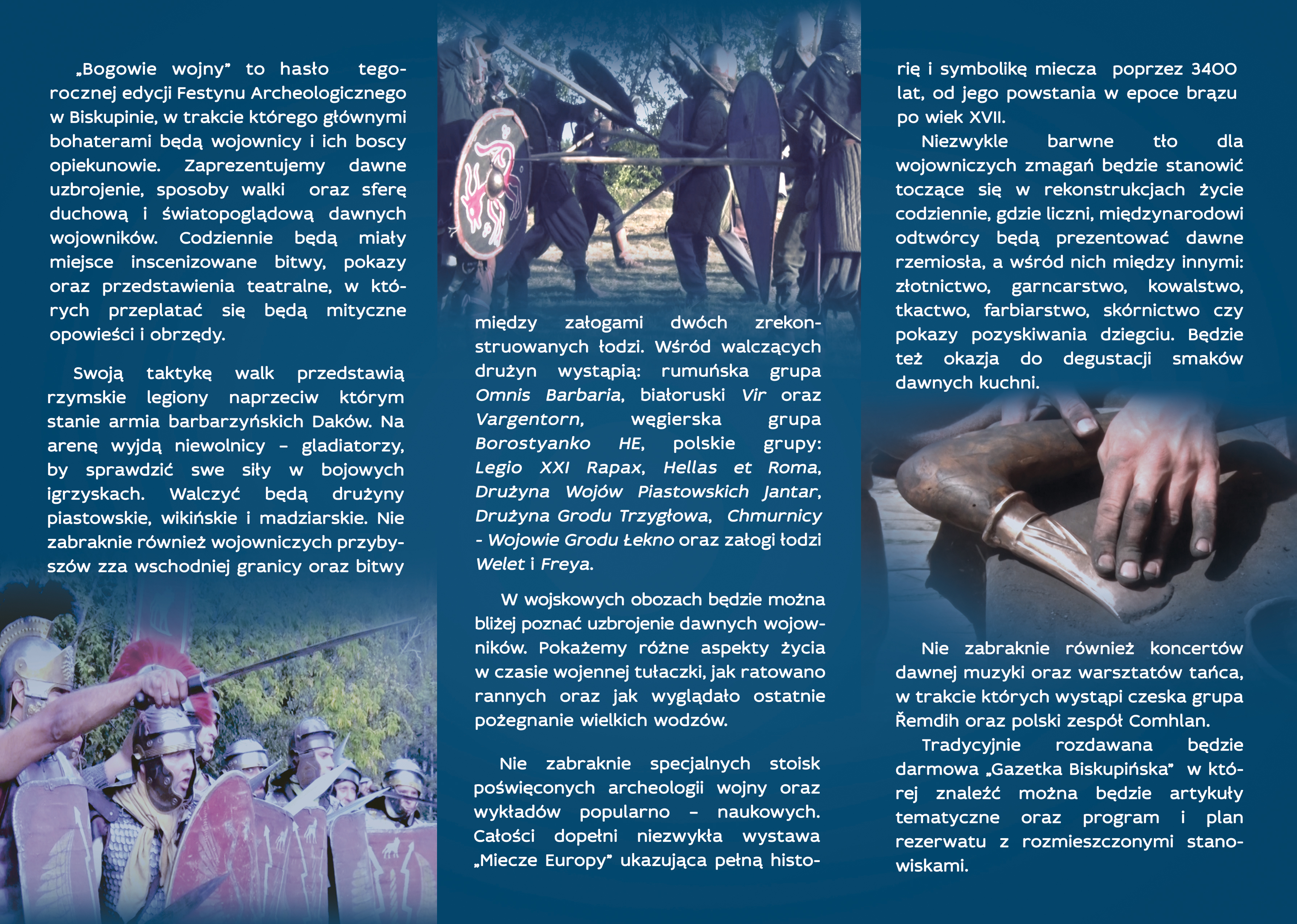 Organizatorzy informują, że jest to program ramowy, który w pewnym stopniu ulegnie zmianie. Aktualny program dzienny znajdować się będzie na stronach Gazety Biskupińskiej, którą każdy z Państwa może dostać za darmo w kasie muzeum na terenie rezerwatu.