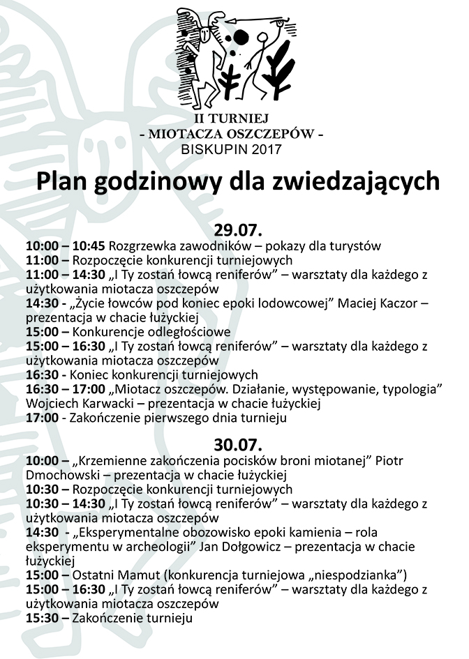 W ostatni weekend lipca (29-30.07.2017) zapraszamy na spotkanie z bronią o niezwykle ciekawej historii- miotaczem oszczepów. Podczas tego wydarzenia odbędzie się turniej miotania oszczepem, wykłady, prezentacje oraz pokazy. Na wszystkich chętnych czekać będzie specjalny punkt, gdzie pod okiem specjalisty będzie można nauczyć się posługiwania miotaczem oszczepów.