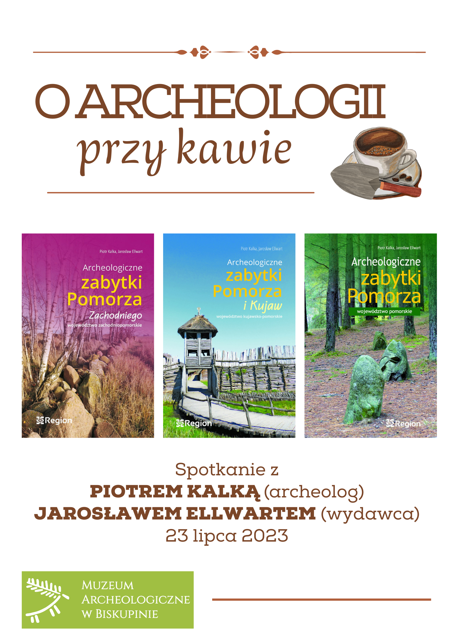 Na nasze pierwsze kawowe spotkanie zaprosiliśmy archeologa Piotra Kalkę oraz wydawcę Jarosława Ellwarta, współautorów przewodników archeologicznych po Kujawach i Pomorzu, Pomorzu i Pomorzu Zachodnim.