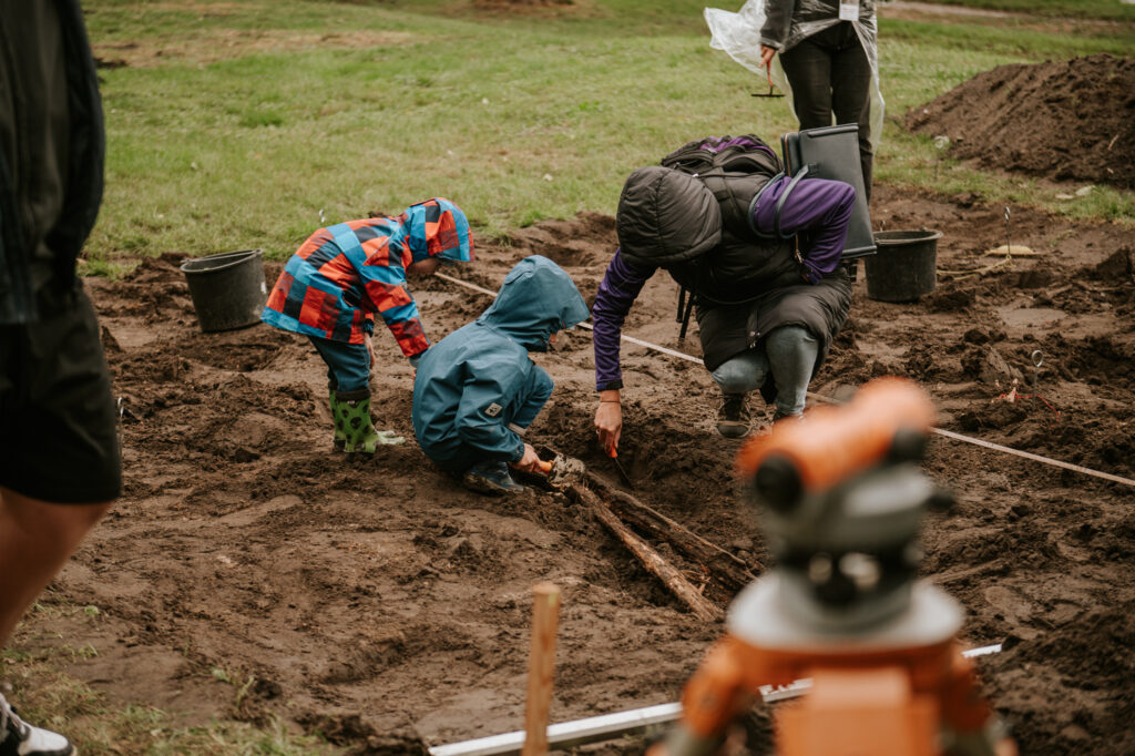 Wykop małego archeologa mieści się w Osadzie obronnej na półwyspie, po prawej stronie po wejściu od bramy. Znajdziecie tam rekonstrukcję wykopu z lat 30-tych, dowiecie się od archeologa jak wyglądały badania na półwyspie na przestrzeni lat, a także będziecie mogli samodzielnie złożyć model łużyckiej chaty, której rekonstrukcja w skali 1:1 stoi tuż obok!